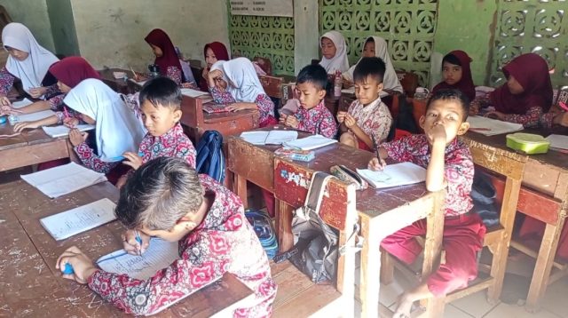 Akibat minimnya ruang belajar, puluhan siswa Sekolah Dasar Negeri (SDN) Karyabuana 02, yang berlokasi di Kecamatan Selanjutnya